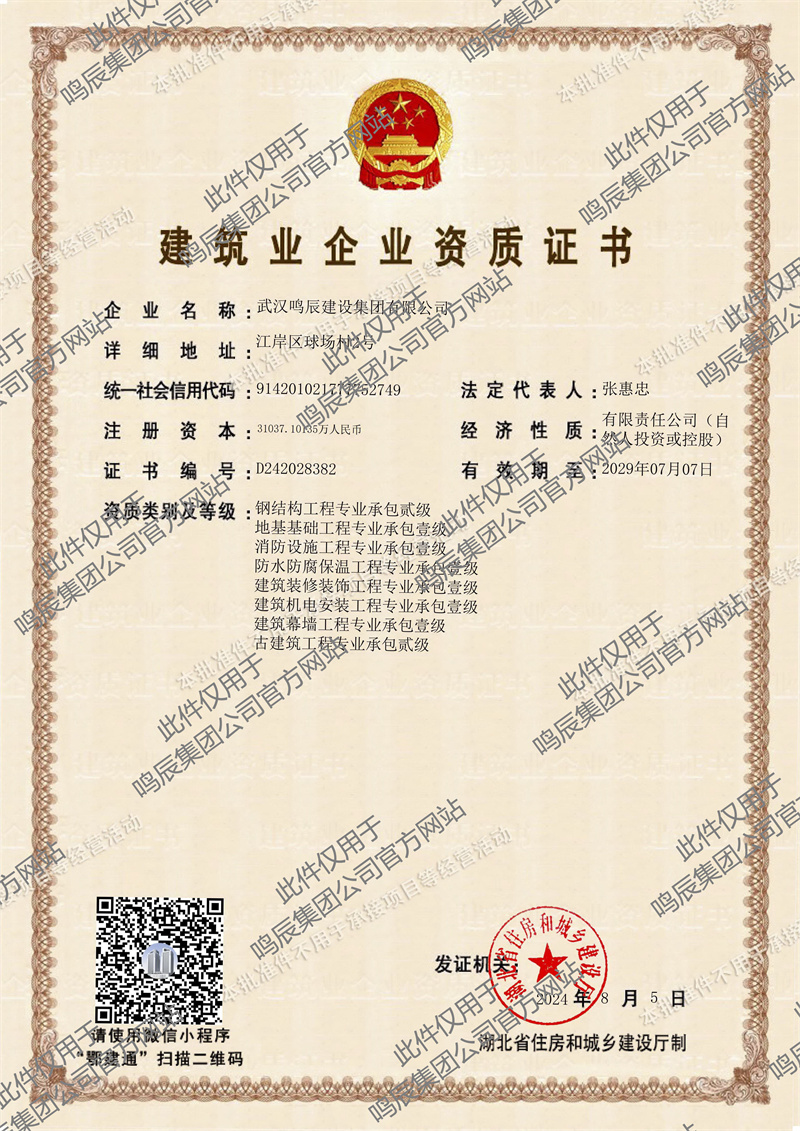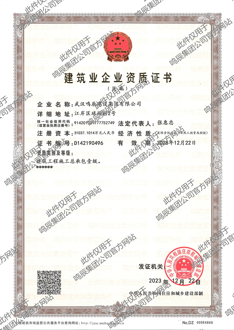 鳴辰集團作為一家年產(chǎn)值20億元,年均創(chuàng)稅近億元的集團公司,擁有房屋建筑施工總承包壹級資質(zhì),下屬開發(fā)公司、市政公司、勞務(wù)公司、物業(yè)公司等20多家經(jīng)營機構(gòu)。經(jīng)營范圍覆蓋:建筑工程施工總承包壹級;消防設(shè)施工程專業(yè)承包壹級;地基基礎(chǔ)工程專業(yè)承包壹級;建筑裝修裝飾工程專業(yè)承包壹級;防水防腐保溫工程專業(yè)承包壹級;建筑機電安裝工程專業(yè)承包壹級;建筑幕墻工程專業(yè)承包壹級;鋼結(jié)構(gòu)工程專業(yè)承包貳級;古建筑工程專業(yè)承包貳級;混泥土銷售;門窗加工及安裝;工程造價咨詢、商務(wù)信息咨詢。集團公司致力于綠色施工、智能建造,始終以“匠心精造”精神服務(wù)社會高質(zhì)量發(fā)展。