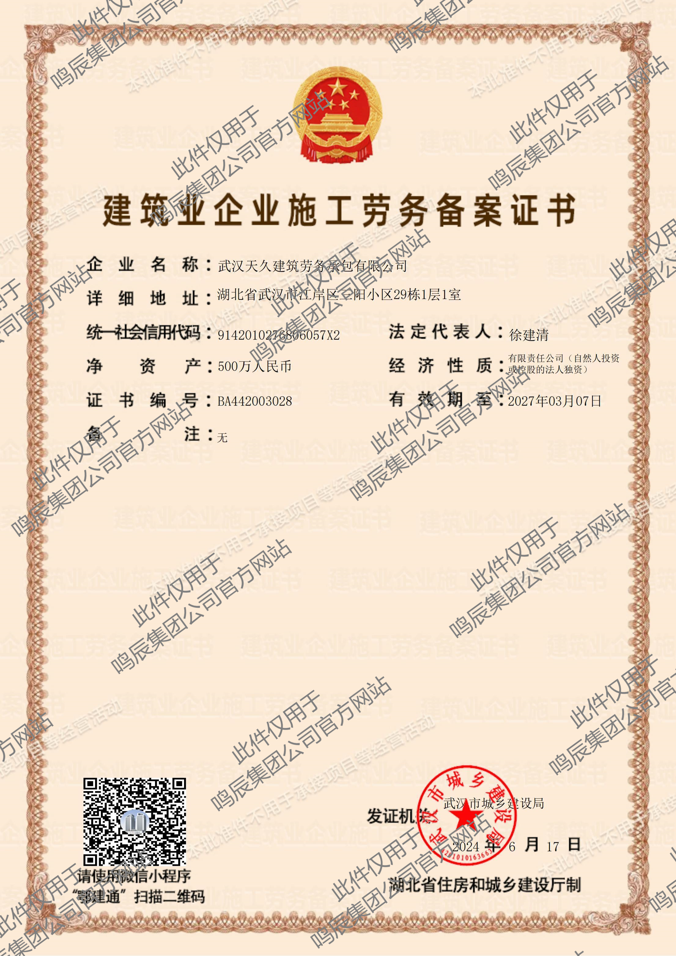 武漢天久建筑勞務(wù)承包有限公司,具備施工勞務(wù)資質(zhì)與模板腳手架專業(yè)資質(zhì),自2019年起全面實(shí)施建筑勞務(wù)實(shí)名制管理。我們不斷深化信息化改革,優(yōu)化勞務(wù)管理流程,確保每一項(xiàng)工作都達(dá)到高標(biāo)準(zhǔn)、嚴(yán)要求。