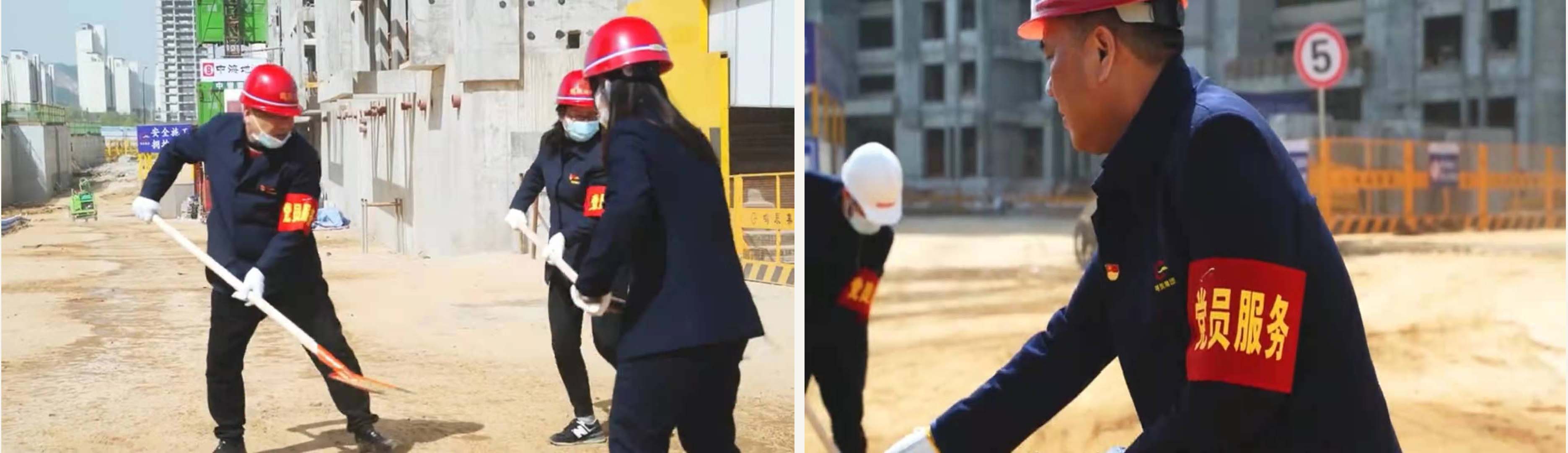 抵達(dá)工地現(xiàn)場,支部書記鄺偉同志做簡短動(dòng)員講話,即分組清掃區(qū)域,分發(fā)工具,拉開黨員活動(dòng)日的序幕。春風(fēng)徐徐,多日陰雨后的陽光灑在每位黨員同志的身上,顯得大家的身影格外偉岸,清掃路面泥土、磚渣、積水、樓層雜物轉(zhuǎn)運(yùn),大家熱火朝天的場景映襯著集團(tuán)上下決心打造標(biāo)桿式裝配式項(xiàng)目的信心。