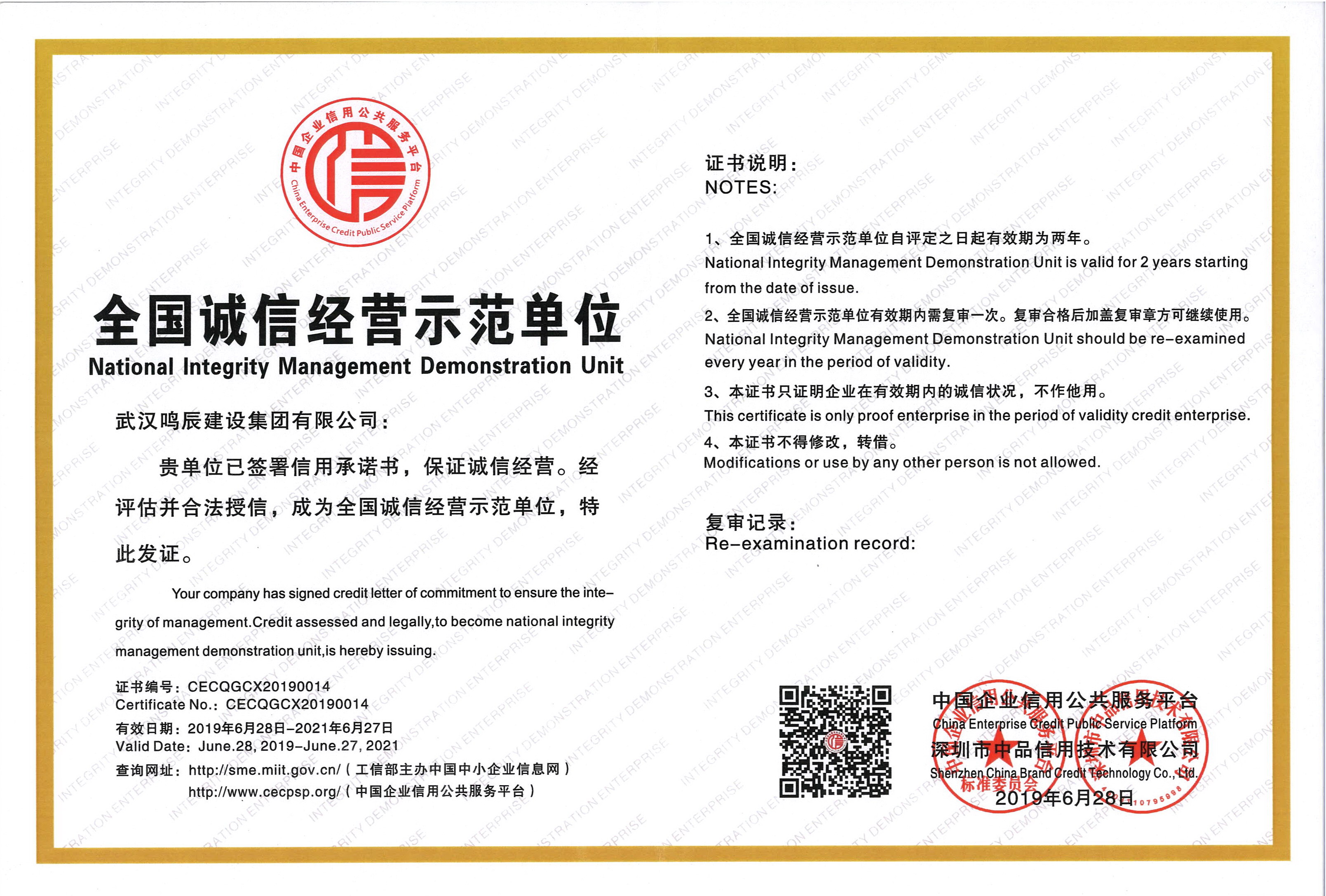 全國(guó)誠(chéng)信經(jīng)營(yíng)示范單位