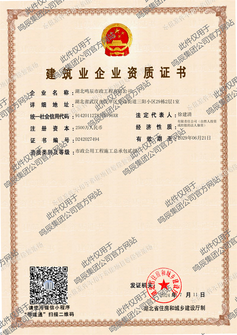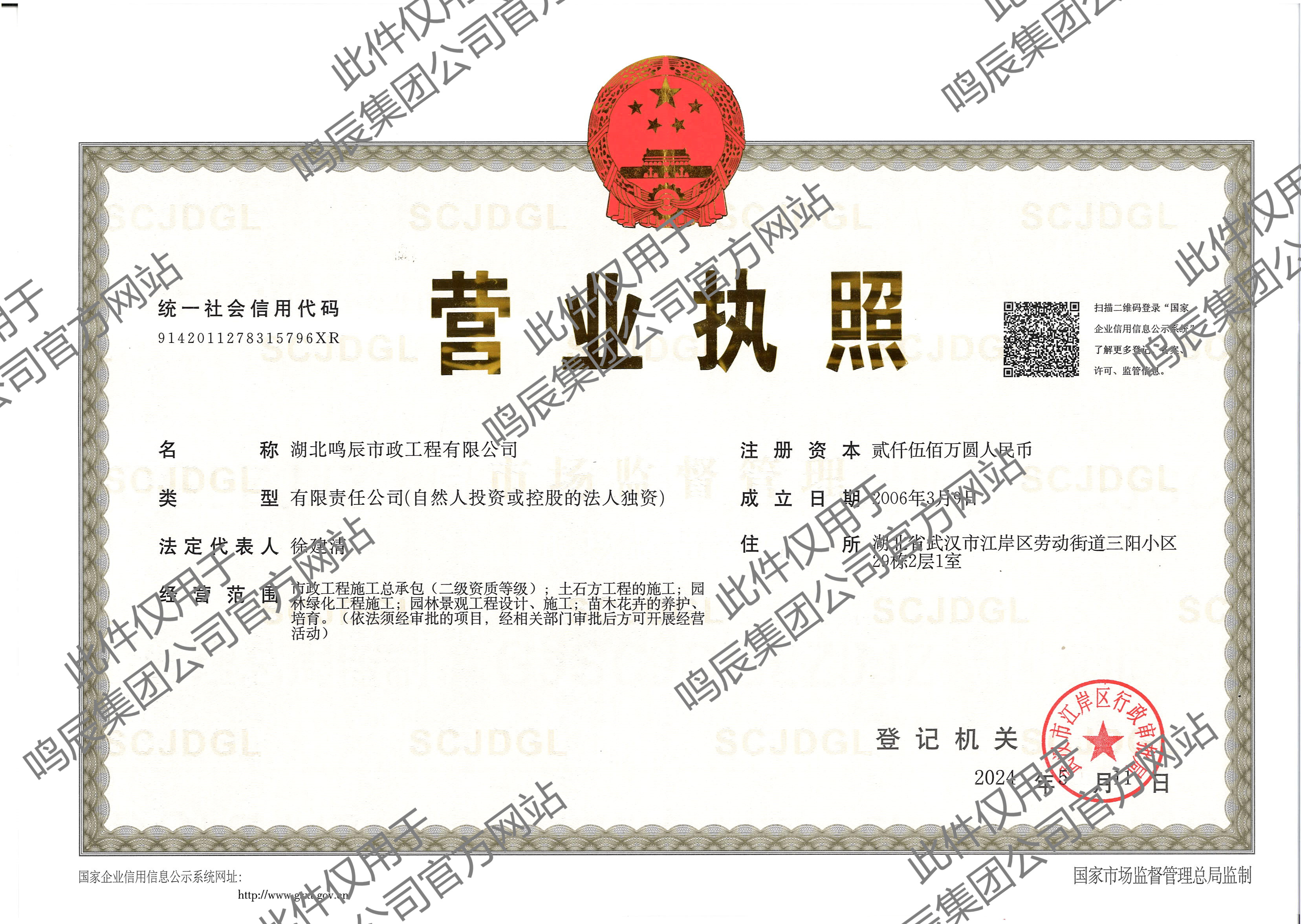湖北鳴辰市政工程有限公司成立于2006年,屬武漢鳴辰建設集團有限公司的全資子公司,注冊資本金2500萬元,具備市政工程施工總承包貳級資質(zhì)。經(jīng)營范圍包括:市政道路工程施工,土石方工程施工,園林綠化工程施工,園林景觀工程設計、施工,苗木花卉的養(yǎng)護、培育等。