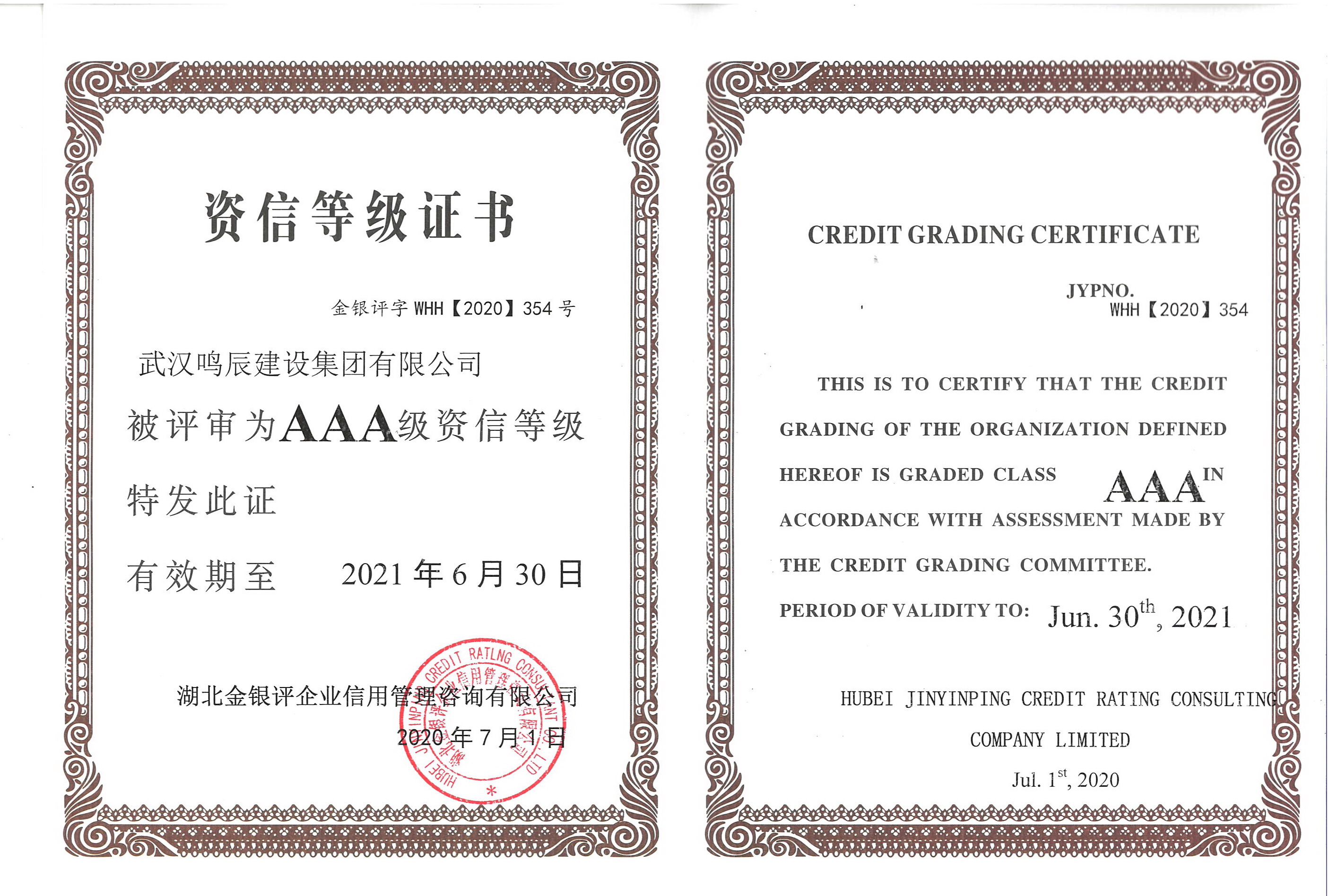 集團(tuán)AAA信用評(píng)級(jí)證書2020年